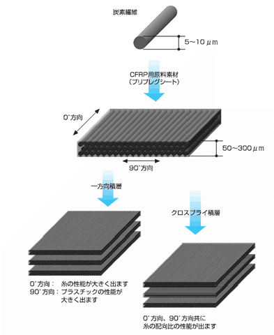 ファイバー(糸)をマトリックス材(一般的にエポキシ樹脂)で固めたものです。